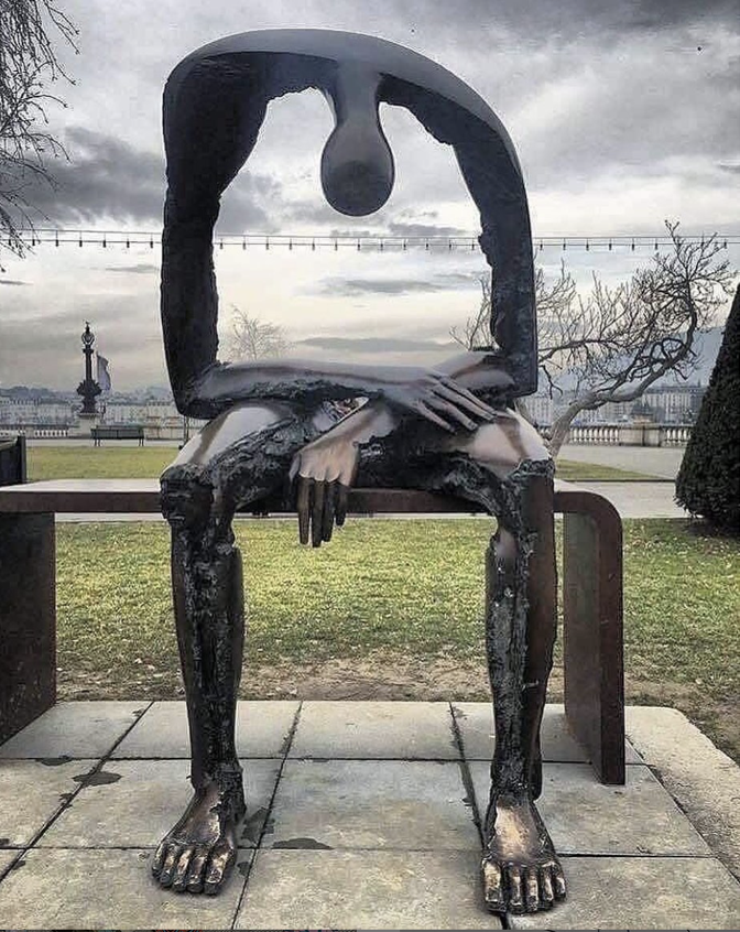 This sculpture is called “Melancholy”and was created by Albert György and it is on display in Geneva, Switzerland.